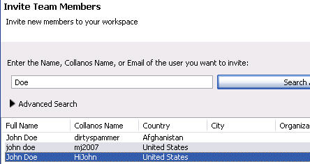 - When searching/inviting Collanos members in the directory, you will not be able to locate yourself or any other member in the currently active workspace, as you are already members of that workspace.