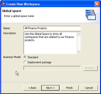 If you select to create a new Global Space, a new dialog opens.